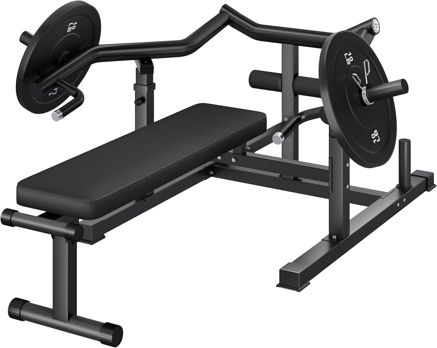 - 【Perfect for Upper Body Workout】: chest press machine features independent converging arms, which made of high-quality steel, and tough enough to hold up to MAX 200lbs per arm, 220lbs per weight holder, 450lbs for bench capacity.Moreover, the weight bar can suitable for Ø 1″ & 2″ plates, works perfectly with any size weights!