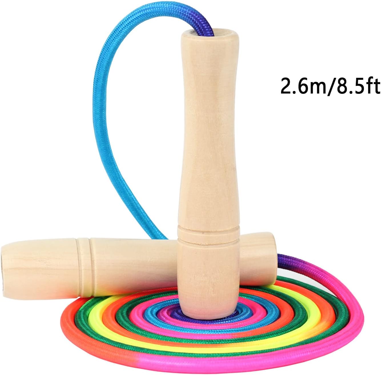 - 【High Quality and Safety】 Soft Rainbow color jump rope, environmental protection and high quality wooden handle, smooth surface and clear texture.
